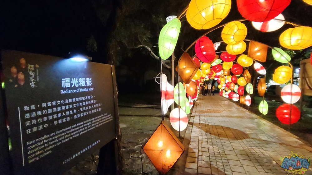 今年2026年「屏東燈節」的客家燈區位於內埔龍頸溪畔公園這一帶,展期從2026年1月23日開始至2026年3月8日止;展區設置12組燈飾作品:繽紛HAKKA(入口)、藍染織韻、稻浪禾風、繁花似錦、燈影映月、福氣綿簷、福光粄影、財圓滾滾等,帶入濃厚的客家元素,展現多彩的客家美學,也是新年喜慶最美的光景。