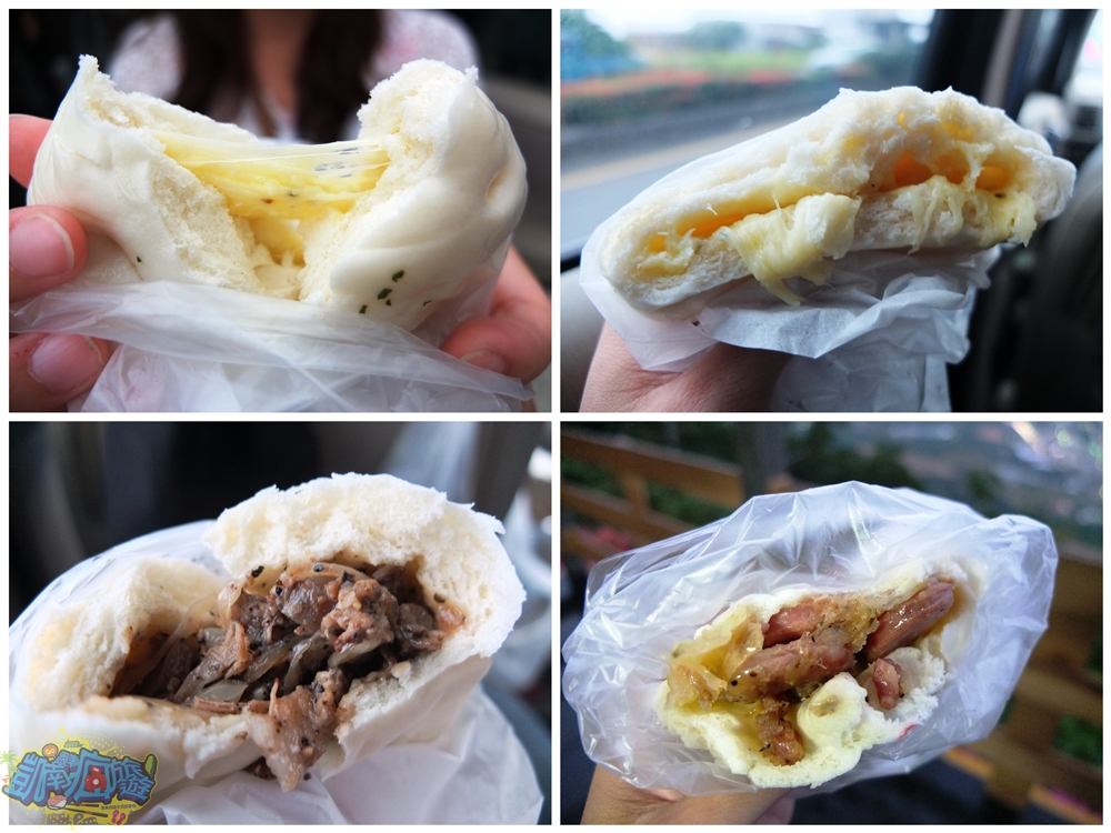 起士包果然如傳聞所言,一扒開來會牽絲~~~太猛了!洋蔥烤肉包的內餡無敵呀!洋蔥烤肉加進了黑胡椒,整體香氣好濃烈,口裡的洋蔥味一直到回家後都還存在;培根香腸包以培根香腸與包子皮的結合,是很有創意的口味,不僅不油膩,還會讓人一口接著一口吃不停!