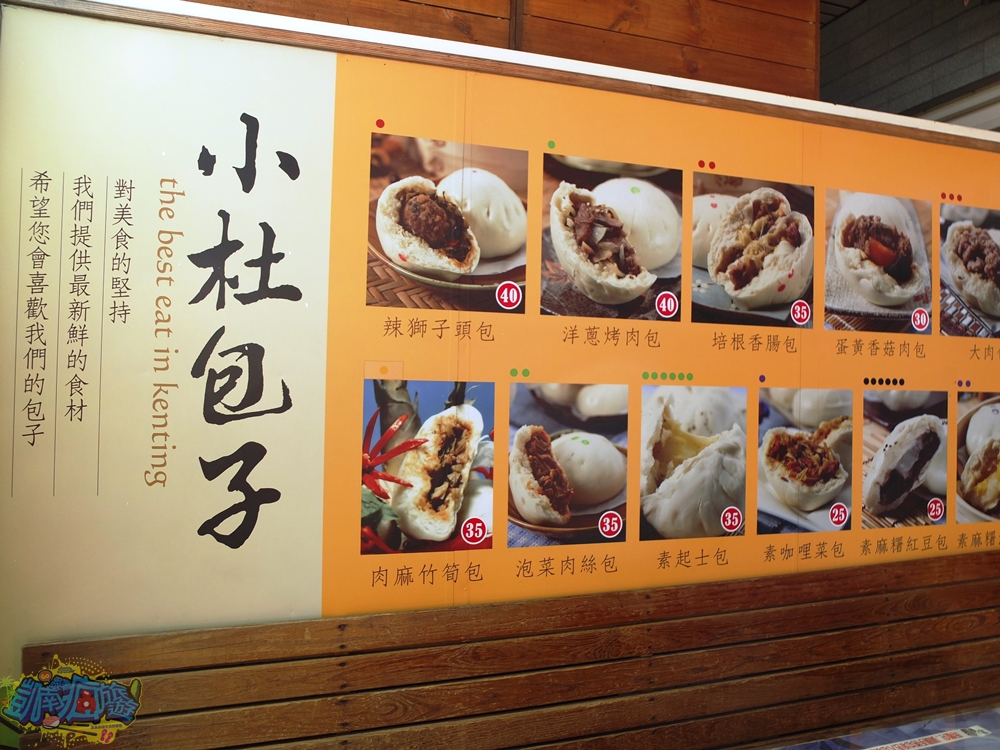 恆春鎮上的「小杜包子」店,人氣旺得嚇嚇叫,口味獨特的手工包子一直是店家熱賣的原因所在,像是辣獅子頭包、洋蔥烤肉包、肉麻竹筍包、泡菜肉絲包等,食材新鮮,用料大方實在,擄獲許多遊客的芳心,就算花長時間排隊等候也甘願,只要到了假日就會看到每一次出爐的包子瞬間被秒殺的場面。