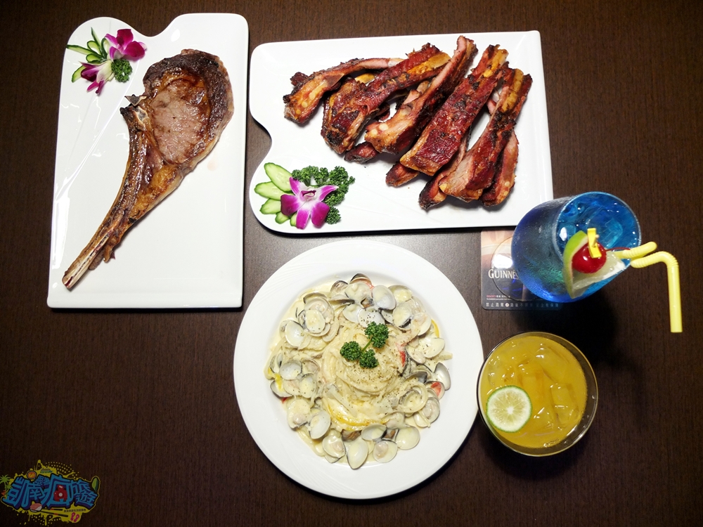 除了蜜汁豬肋排和美國戰斧牛排之外,白醬蛤蜊義大利麵、藍柑橘調酒和無酒精創意特調,初次來訪不知道要吃什麼可以照著點,肯定不會失望。提供義大利麵、台式熱炒、美式炸物等豐富餐點選擇。
