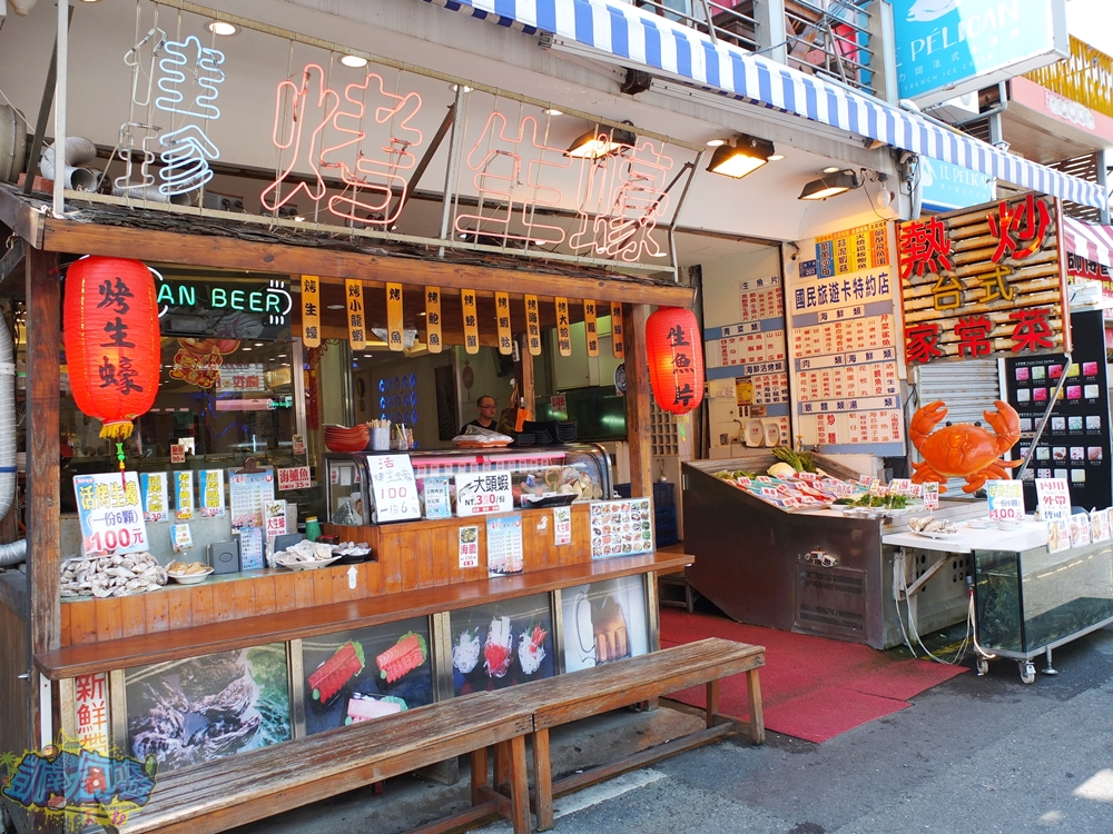 每當入夜天黑,店面前的木式小攤子亮起燈光,宛如日本風味濃厚的開放式居酒屋,大家可以坐在攤位上的座位,這裡烤生蠔、烤小龍蝦、烤魚、烤鮑魚、烤螃蟹、烤鳳螺…等豐富海鮮烤物任您挑,配著一杯啤酒,盡享墾丁大街優閒度假感。