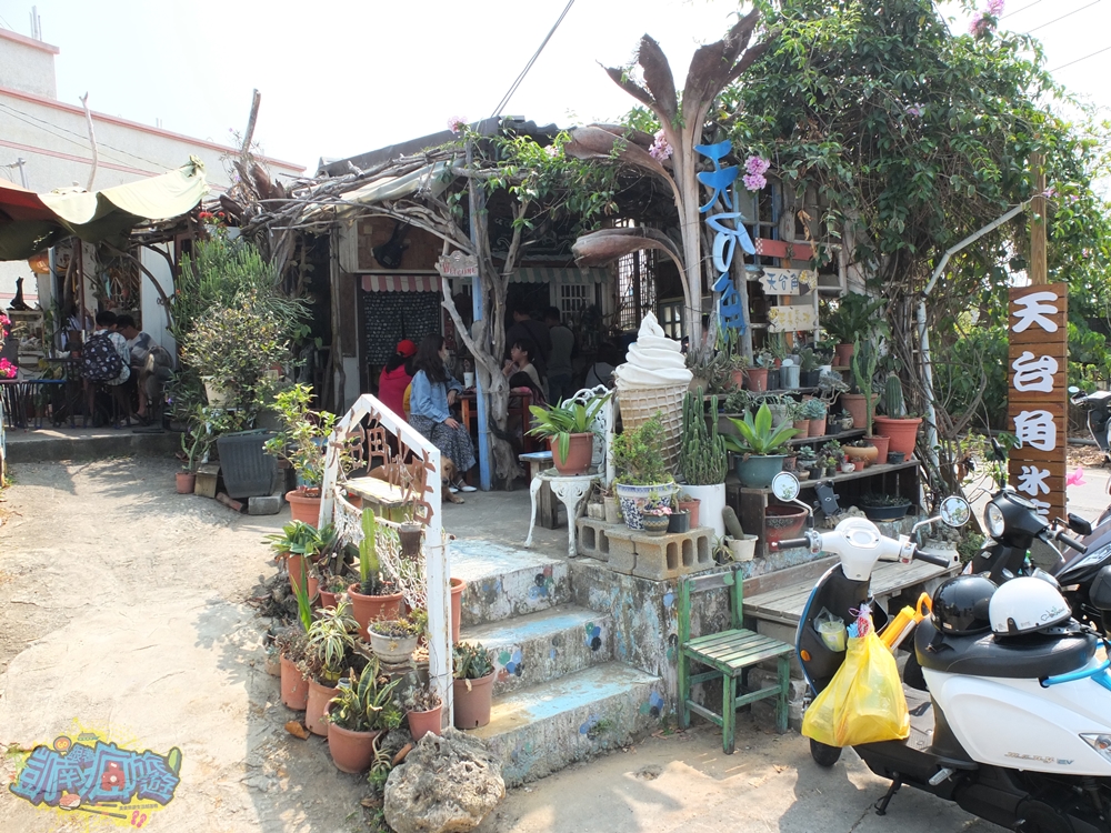 好一陣子,這家「天台角冰店」幾乎洗版各大有關小琉球旅遊話題的社群版面,在Google搜尋小琉球冰店一定會跳出這一家!以漂流木等海廢舊物、老宅古物及各種多肉植物盆栽,打造出獨樹一幟的店面風格,外觀超好拍的!而這裡又被稱為「小琉球最狂水果剉冰」,當冰品剛端上桌時,我們直接被份量嚇到耶!冰品上頭給的水果多到看不見底下的剉冰,就像一座又高又尖的冰山,有夠浮誇!