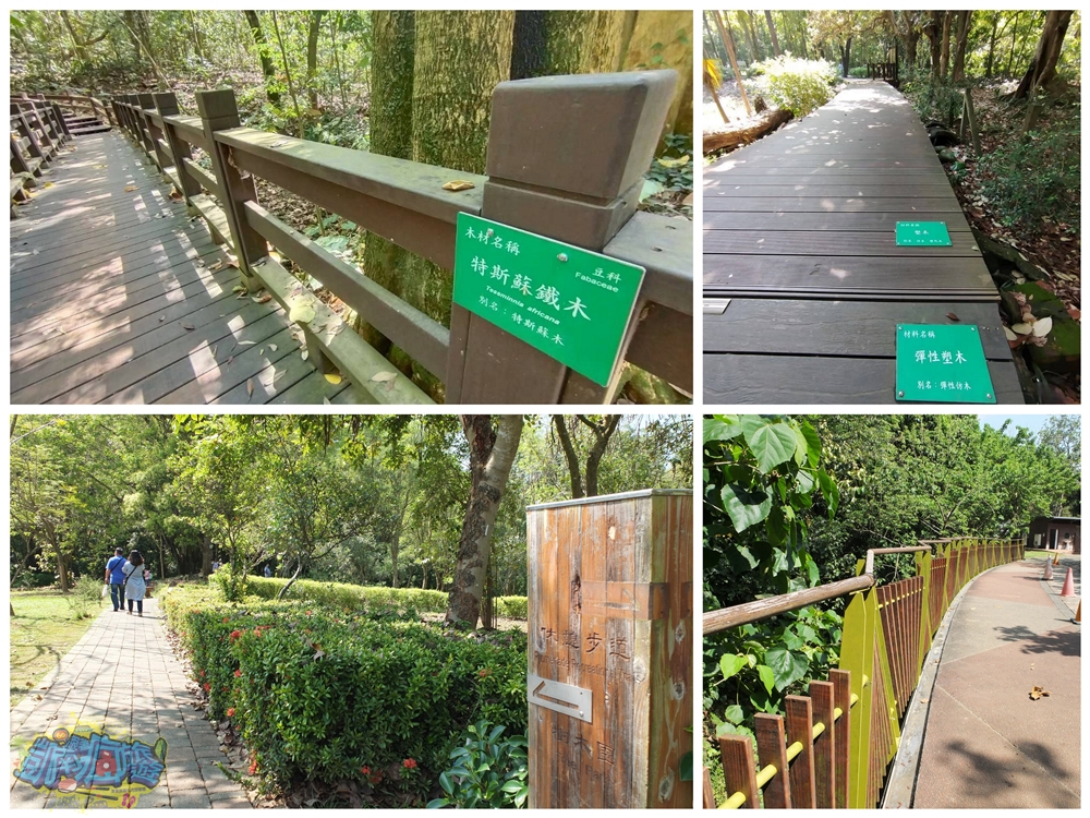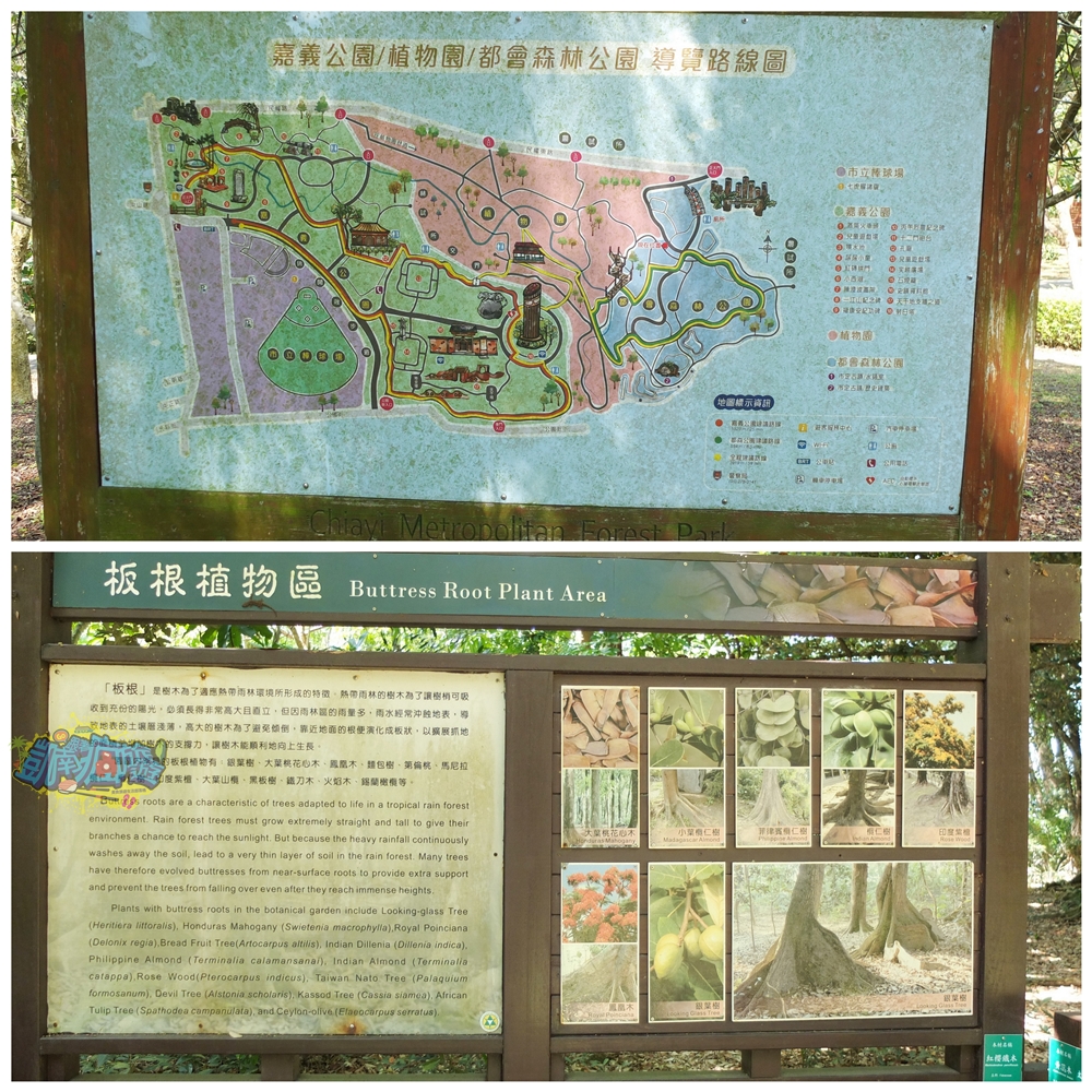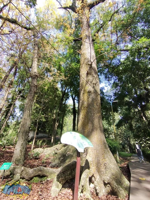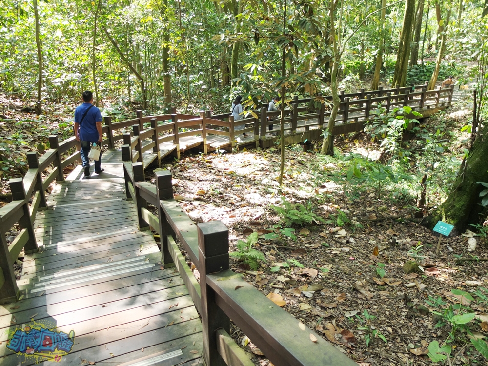 在「板根植物區」也能看到許多熱帶雨林常見的植物,像是鳳凰木、麵包樹、欖仁樹等,都是台灣常見的熱帶樹種。