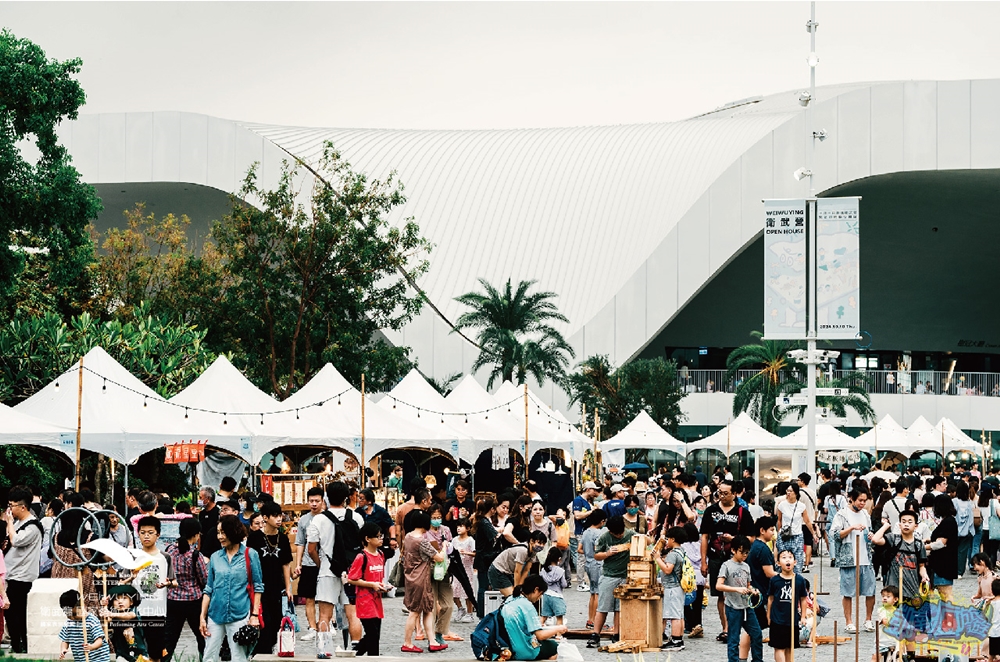 衛武營雙十國慶!四廳院免費索票場館全開、超過百家品牌市集逛不完!10/10–10/12市集熱鬧登場!永續好物、綠食光選物所、蚵殼粉杯墊手作、任務挑戰集章抽獎、消費滿額送行李箱,還有限量花露露餅乾及街頭表演等驚喜不斷!夜晚眾人的搖擺演唱會,蕭秉治等歌手嗨翻全場!