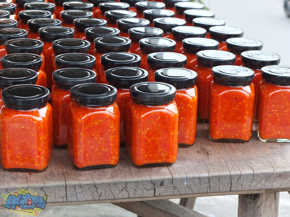 店家自製手工拌炒的辣椒醬,原本只是給現場吃麵的遊客享用,由於太受歡迎了,後來決定裝玻璃罐「小琉球相思辣椒」販售給愛吃辣的遊客,網路也有在賣喔!