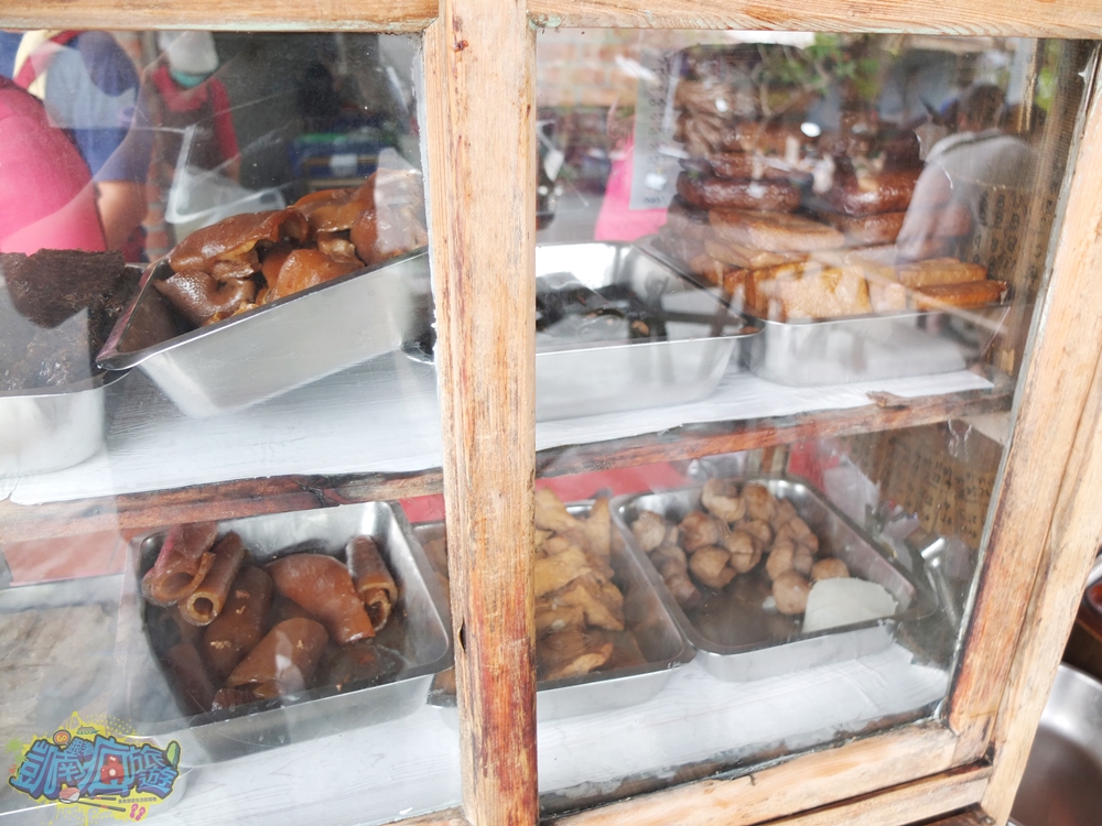 ▲充滿年代感的木製櫥櫃擺放滷味,常見的豆干、海帶、豬皮、油豆腐、米血等滷味食材都有賣。