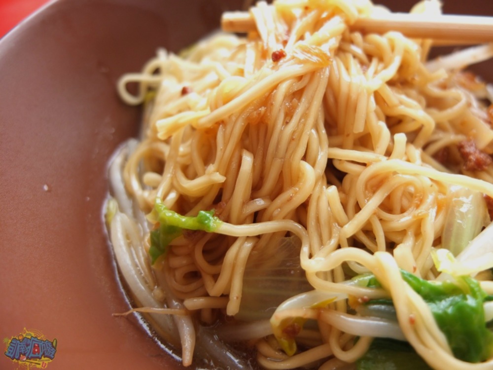 ▲看似簡簡單單的乾麵,麵條帶有Q勁,不會過軟過爛,加些菜類,再淋上肉燥,完全是一碗滿分的乾麵。